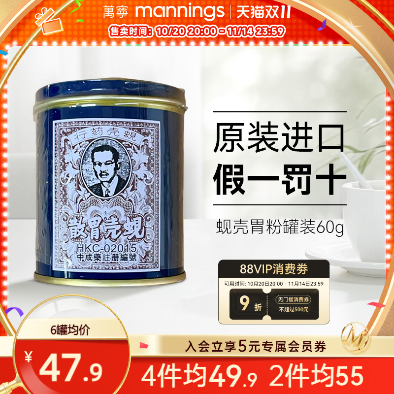 万宁香港蚬壳胃散胃药铁罐装港版蜆殼胃粉60g*2罐胃散缓解胃痛