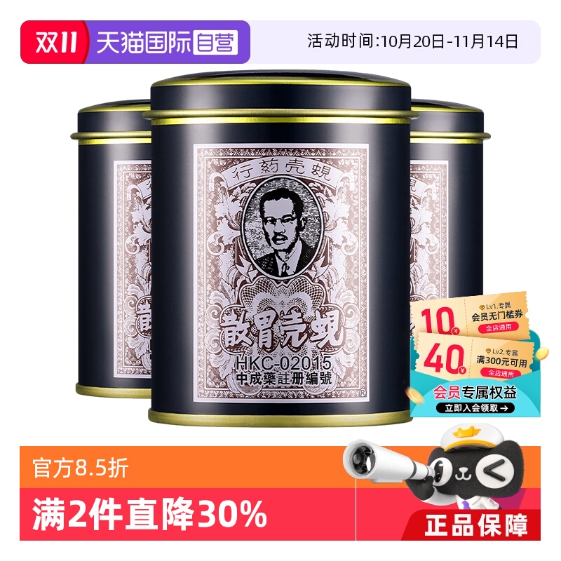 【3罐】香港蚬壳胃散现货旗舰店港版铁罐装胃药非张国周太田胃散