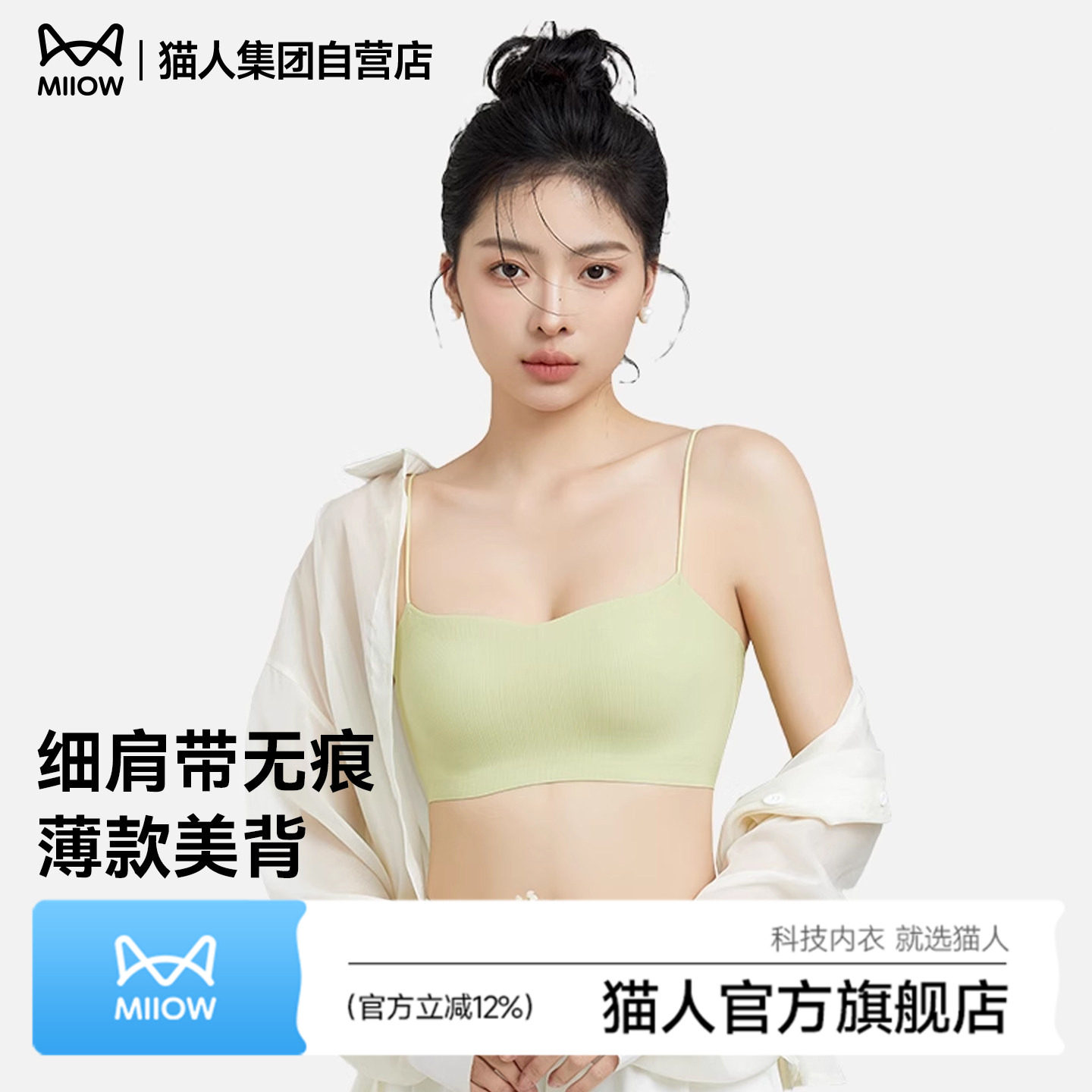 猫人细肩带内衣夏季美背一字无痕抹胸吊带胸垫背心一体式聚拢文胸