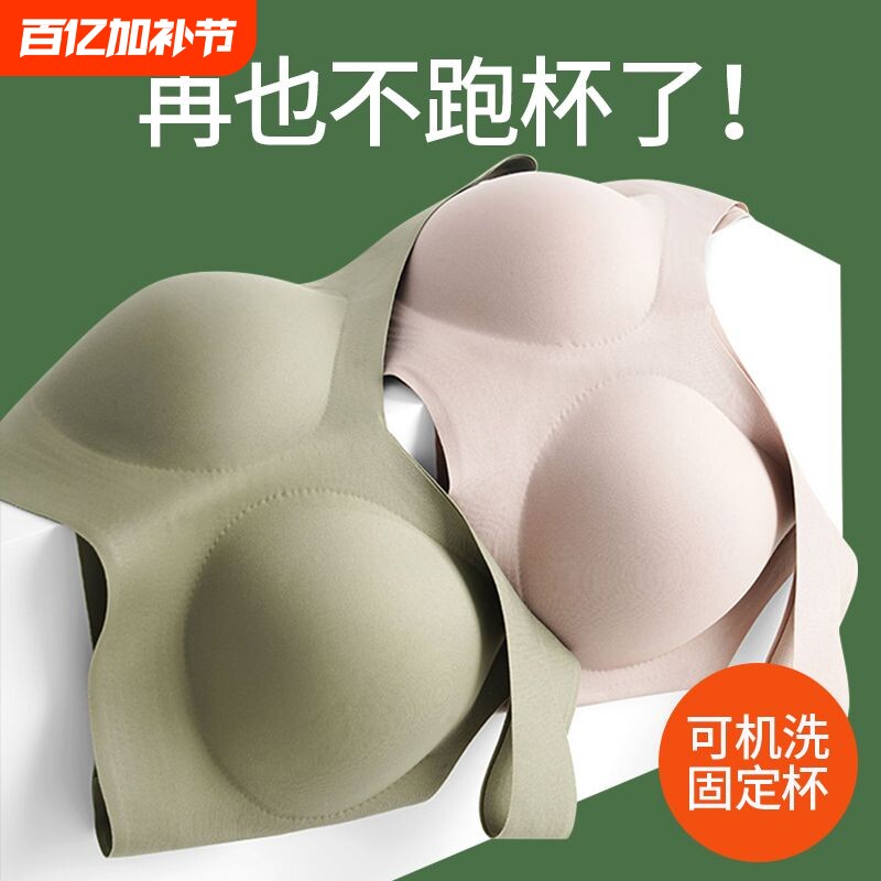 无痕文胸无钢圈内衣女聚拢小胸显大防下垂一体背心式美背薄款胸罩