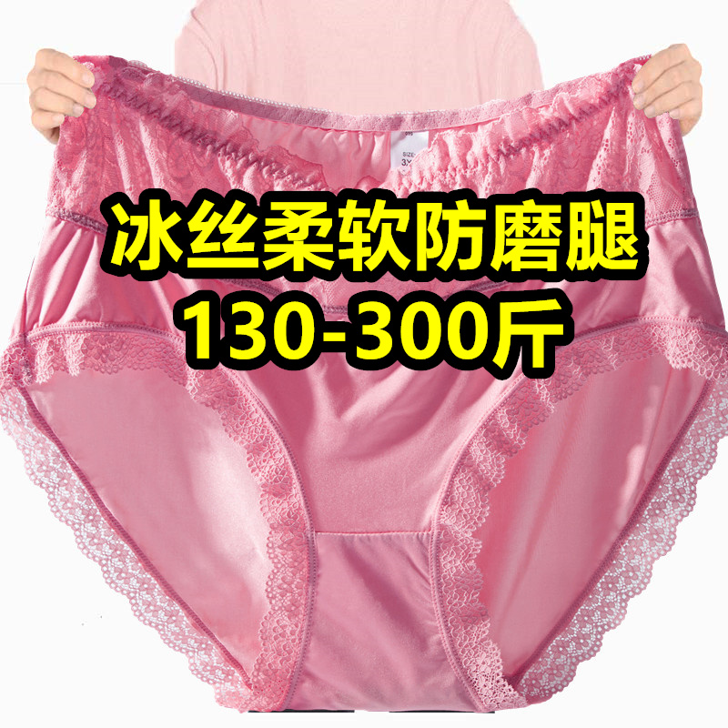透气冰丝女人内裤高腰加肥加大码蕾丝性感胖mm200-300斤三角短裤