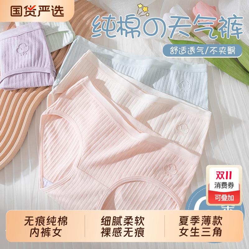 夏季内裤女士纯棉女人抗菌抑菌时尚中腰无痕透气少女生三角短裤头