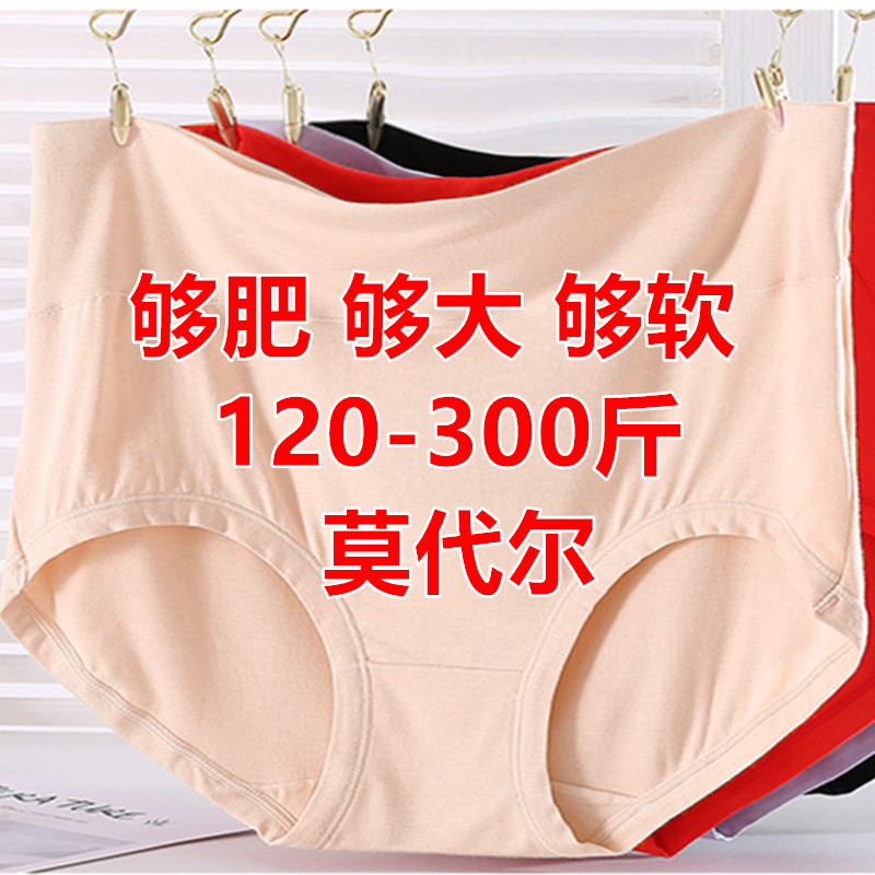 加肥加大码莫代尔棉女人内裤200斤胖妹妹中高腰妈妈三角底裤300斤