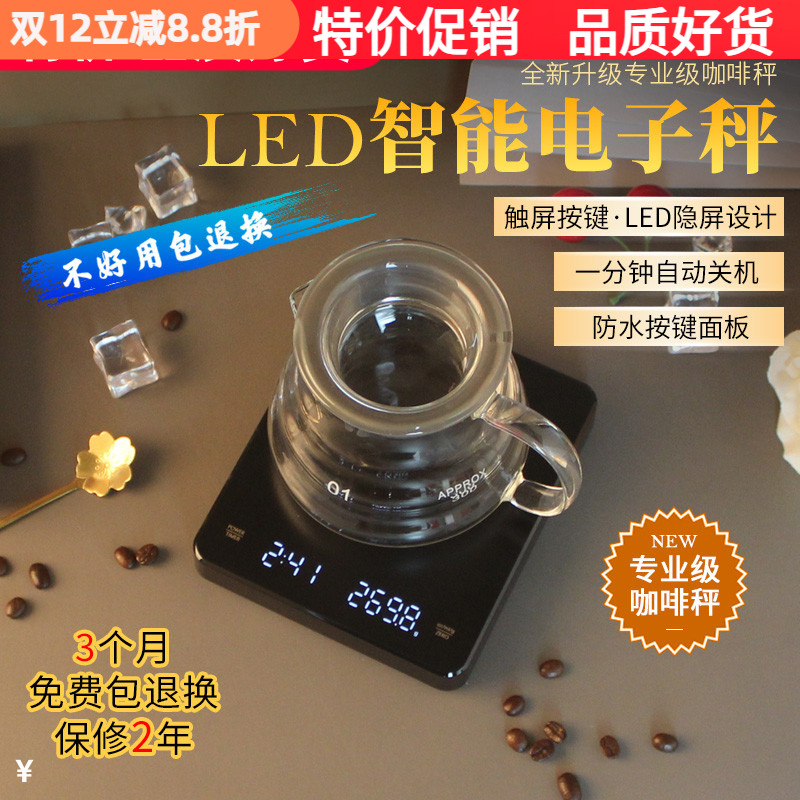 LED咖啡秤智能意式手冲咖啡电子秤自动计时电子称厨房烘焙茶叶