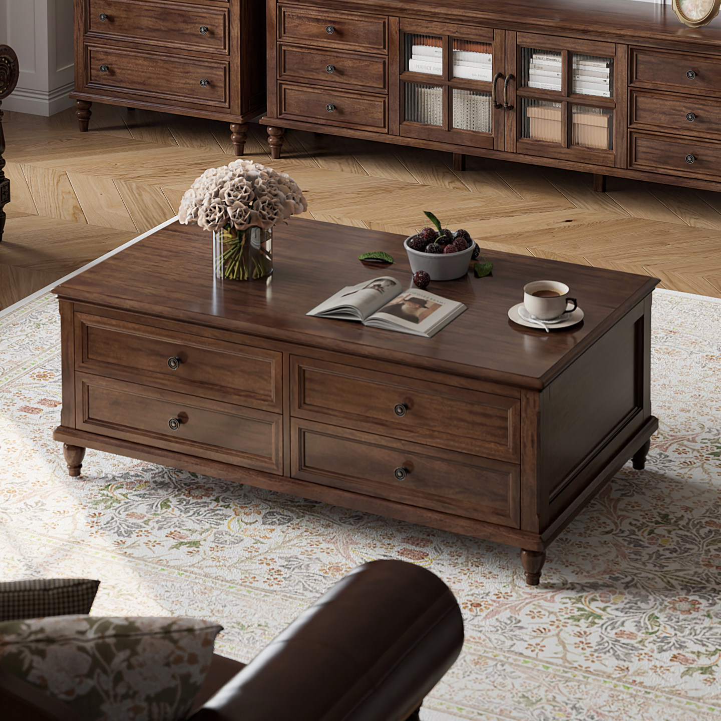 - 美式乡村实木茶几