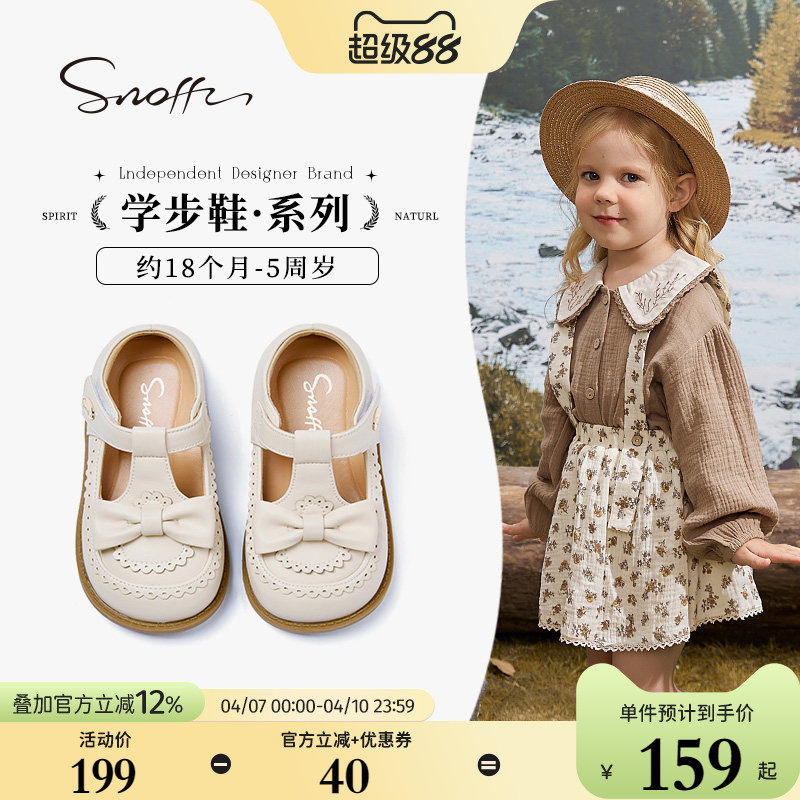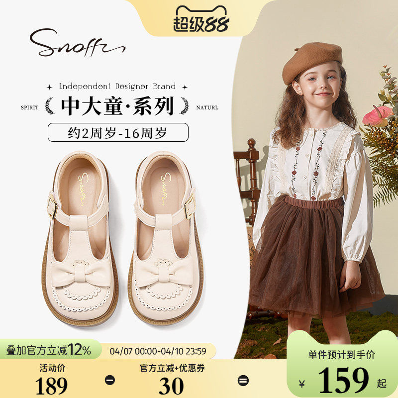 斯纳菲女童皮鞋白色开学春秋辛苦2026儿童蝴蝶结软底女孩宝宝单鞋