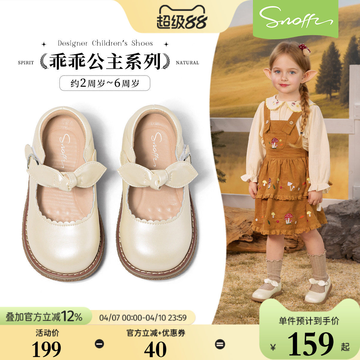 斯纳菲儿童皮鞋2026春秋新款女童小公主鞋时尚软底洛丽塔白色单鞋
