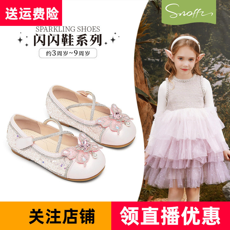 百丽童鞋女童皮鞋2026春夏水晶闪钻爱莎公主鞋软底防滑小女孩单鞋