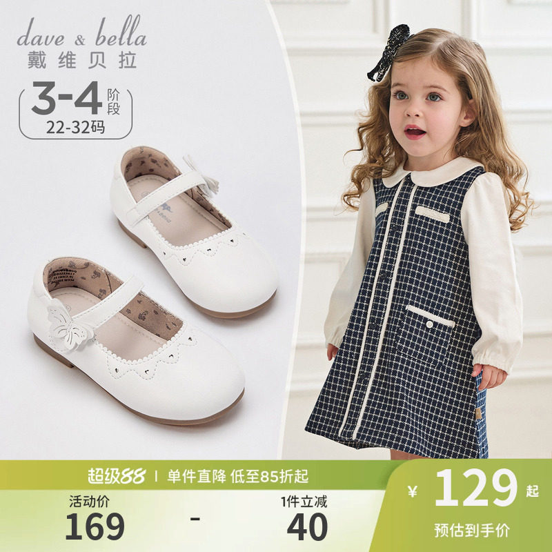 戴维贝拉女童皮鞋演出儿童单鞋白色2026春季新款小女孩公主鞋软底