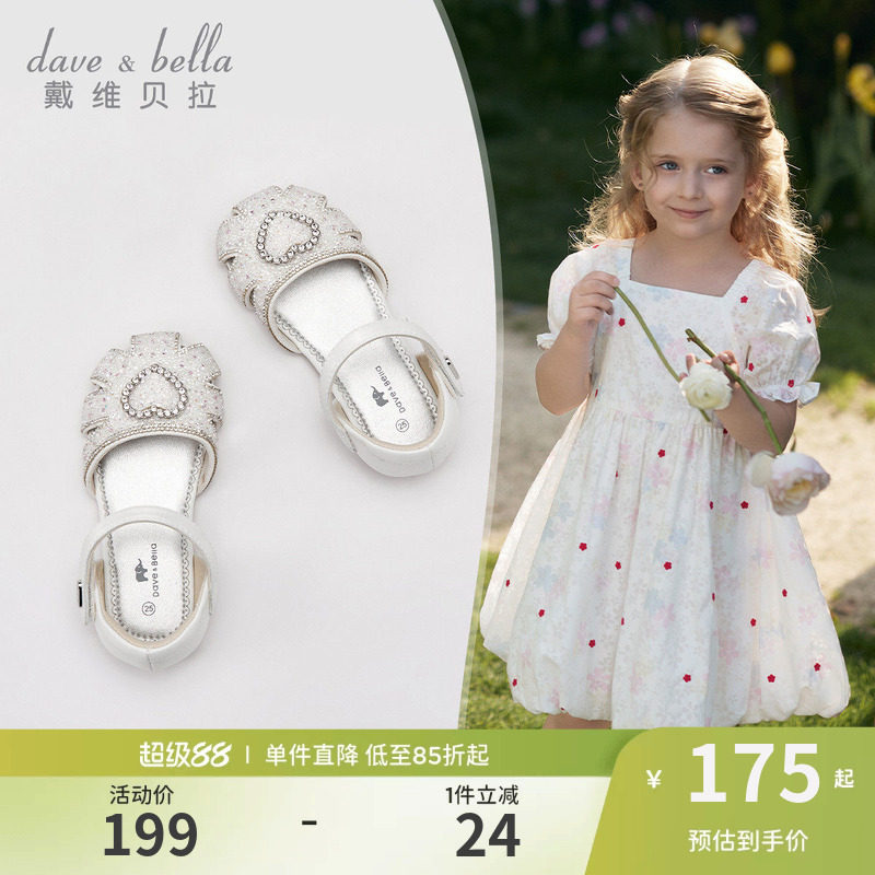 戴维贝拉女童凉鞋宝宝皮鞋夏季新款大童公主鞋儿童水晶鞋闪钻白色