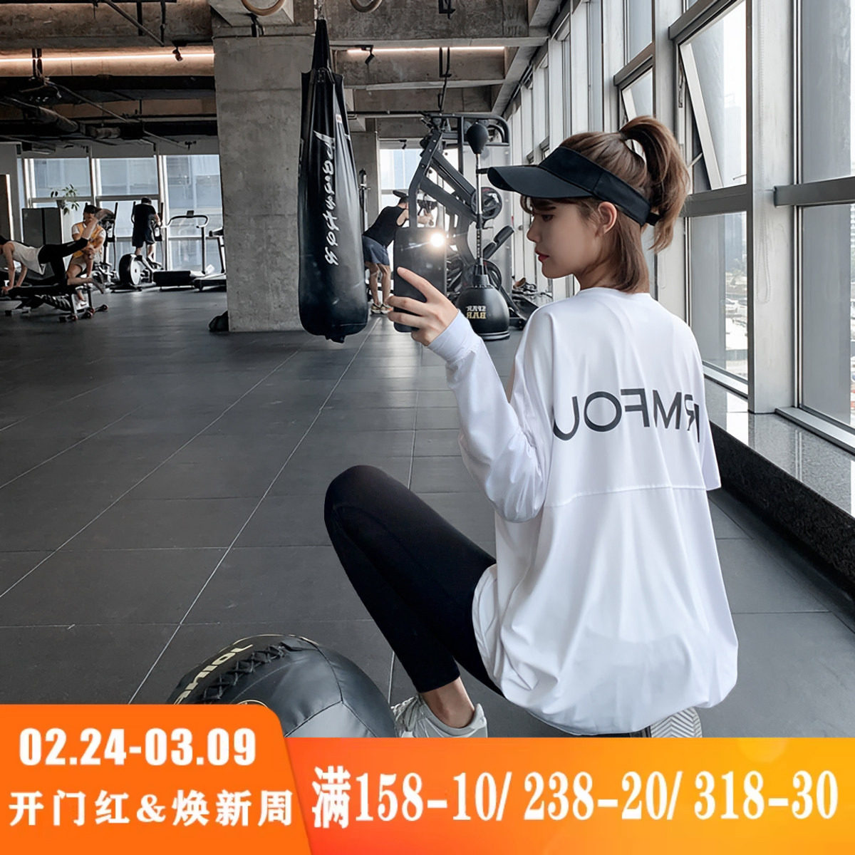 宽松显瘦健身服大码胖mm跑步瑜伽上衣速干运动T恤女长款连帽罩衫
