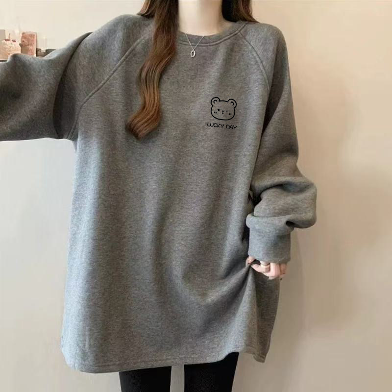 秋冬新款圆领长袖T恤时尚大码宽松胖mm遮屁股德绒保暖中长款上衣