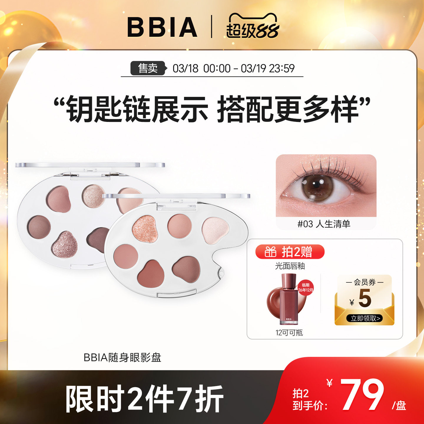 【重磅新品】BBIA韩系限定随身眼影盘高颜值多色日常正品可挂设计