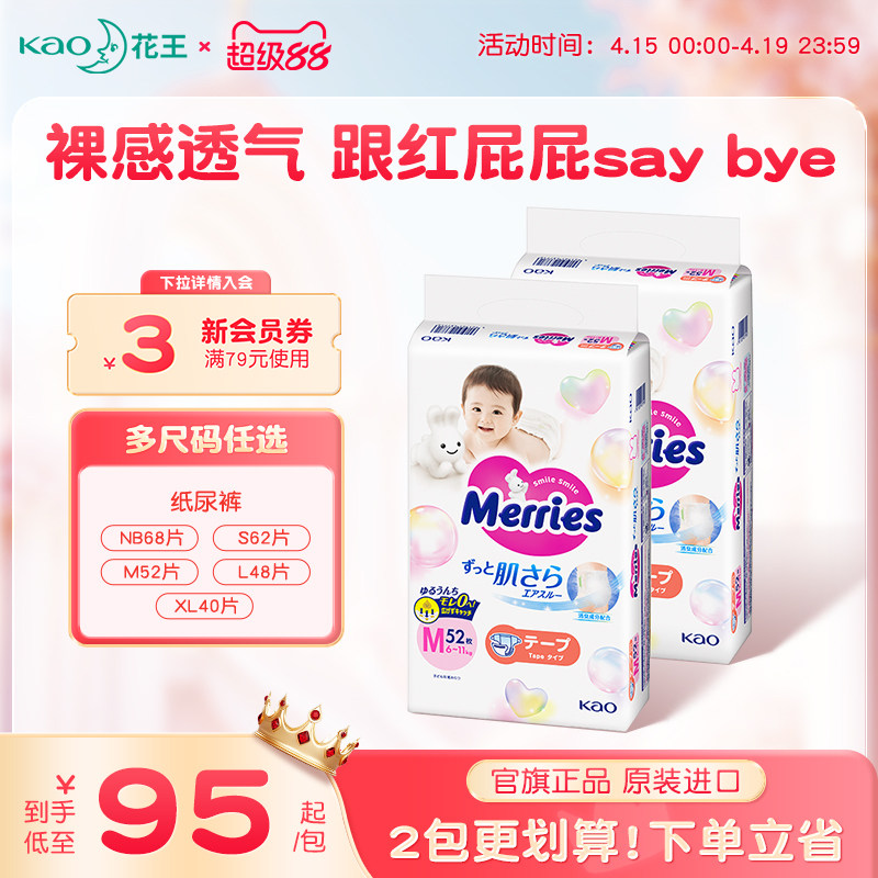 花王妙而舒纸尿裤新生婴儿NB/S/M/L/XL*2超薄透气宝宝尿不湿尿片