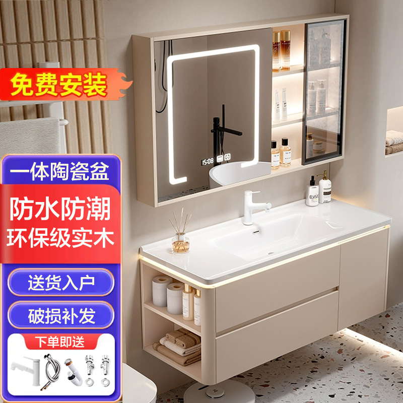 智能实木浴室柜组合优品一体陶瓷盆卫生间洗漱台洗手洗脸盆柜组合
