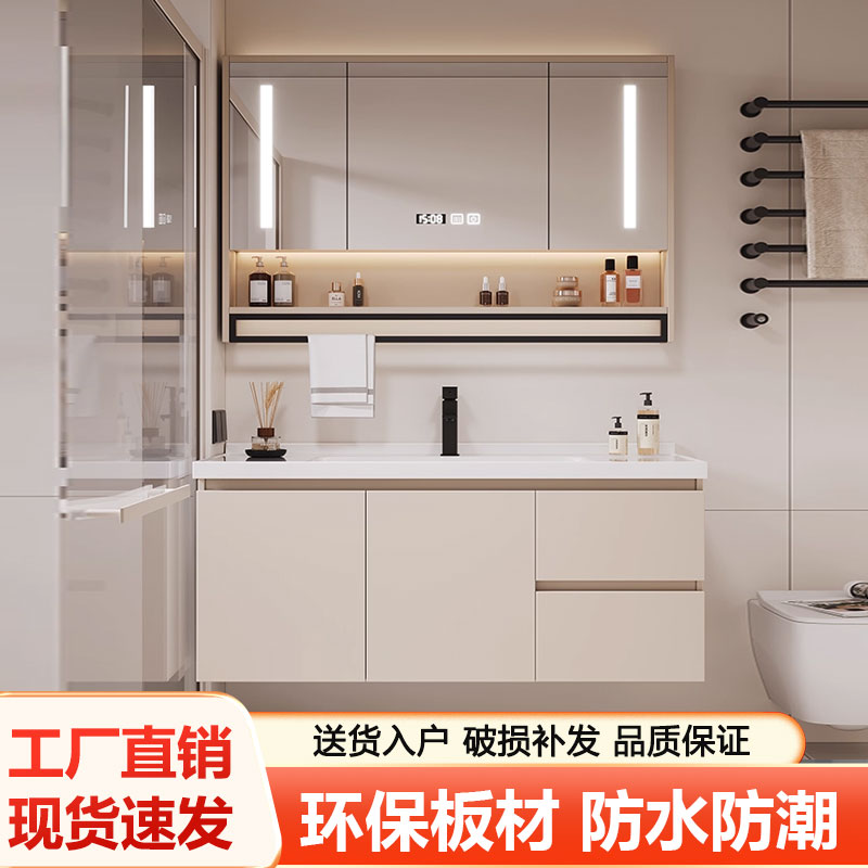 轻奢纳米云岩石实木浴室柜组合现代简约洗手洗脸盆柜卫生间洗漱台