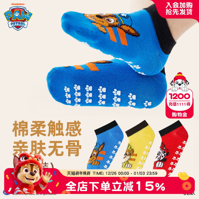 汪汪队男童袜子春秋款女童短袜船袜男孩宝宝儿童地板袜隔凉防滑袜