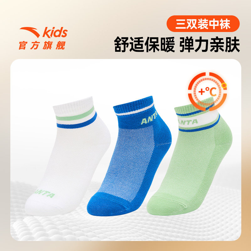 安踏儿童袜子三双装男童袜子女童袜子2025秋冬新款棉袜子弹力袜子