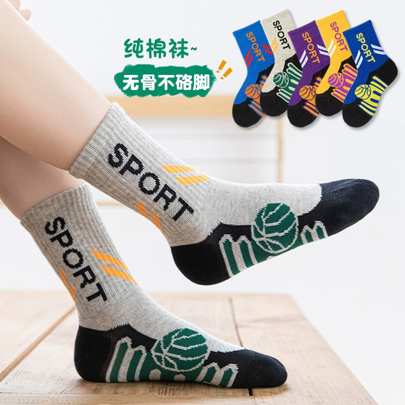 男童袜子中筒纯棉春秋学生秋冬季儿童大童男孩运动足篮球高筒长袜