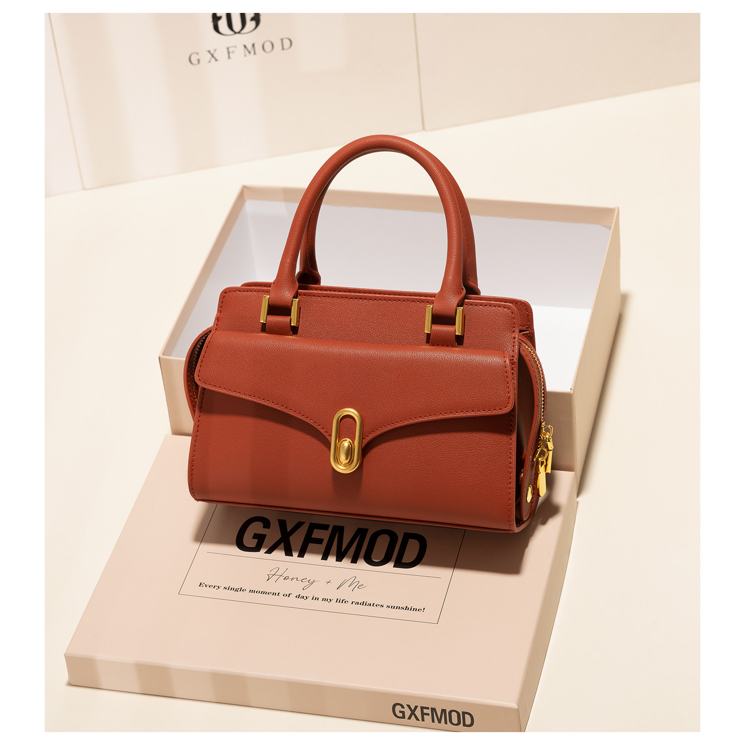 GXFMOD原创设计真皮红色女包2025春新款流行结婚包单肩手提新娘包
