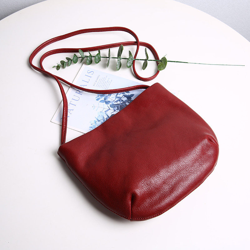 高级感红色女包超薄小包头层牛皮复古半圆包简约信封包单肩斜挎包