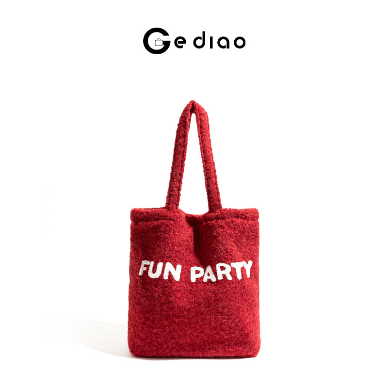 格调studio韩系撞色毛呢红色女包2025冬季手提包圣诞氛围感单肩包