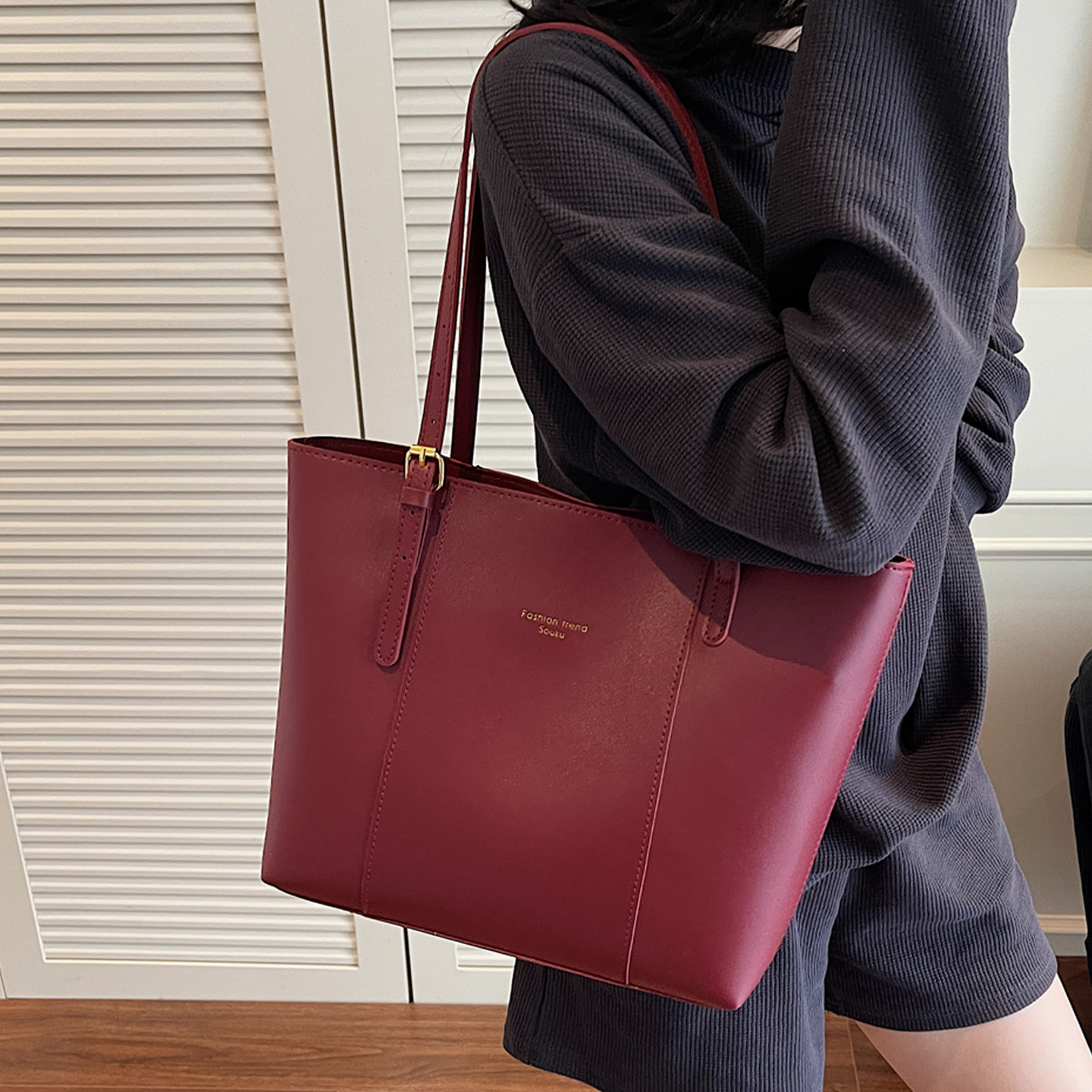 大容量包包新款红色女包单肩托特包大容量时尚通勤流行手提腋下包