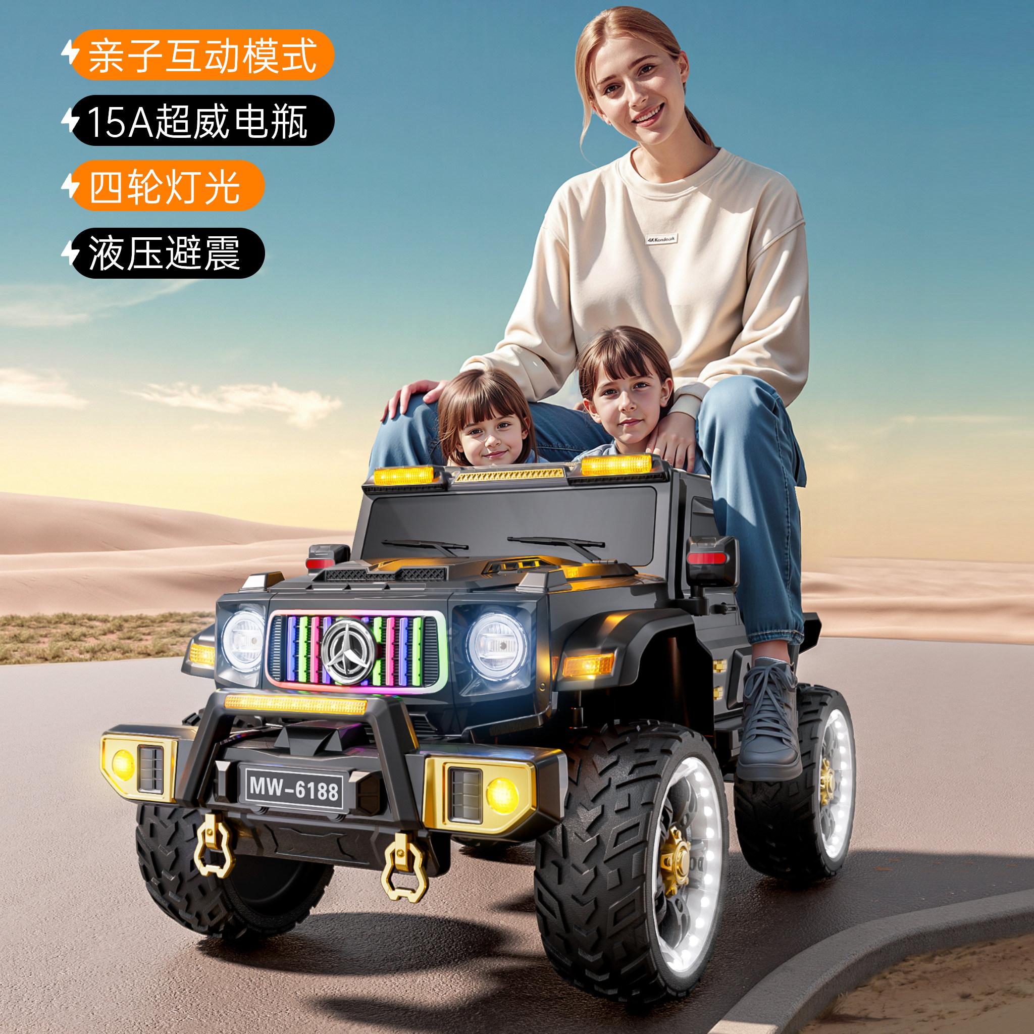 儿童电动越野车可坐大人宝宝汽车小孩双座电瓶车婴幼四轮玩具童车