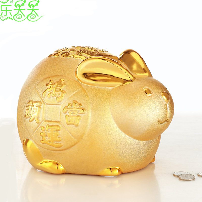 2023年兔年陶瓷金兔子存钱罐卡通招财摆件大号儿童储蓄罐家居饰品