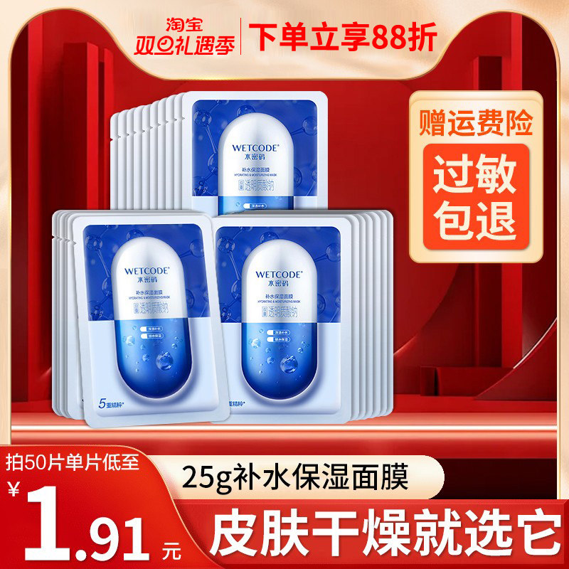 水密码面膜女补水保湿美白淡斑收缩毛孔紧致提亮肤色玻尿酸男正品