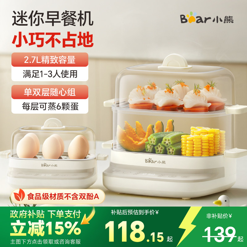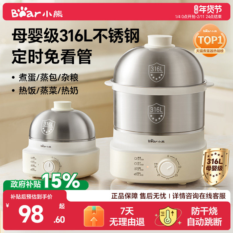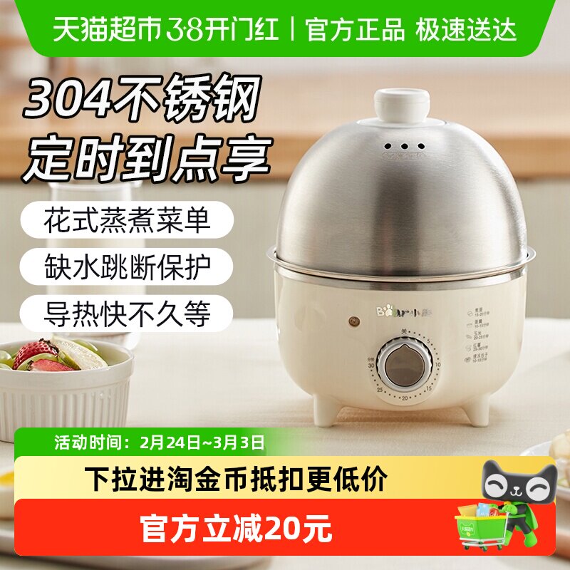 小熊煮蛋器蒸蛋器家用小型不锈钢蒸锅新款预约定时早餐机官方正品
