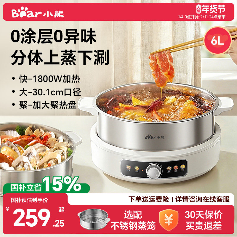 小熊电火锅电锅多功能大容量家用电炒锅蒸锅电热锅电煮锅官方旗舰