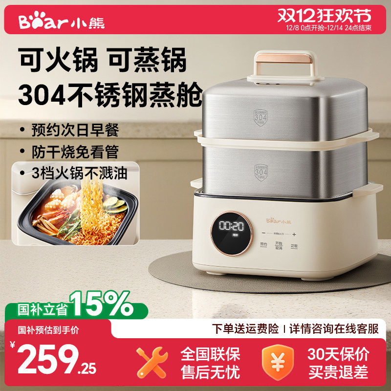 小熊电蒸锅多功能家用三层2026新款蒸锅小型煮锅定时早餐机电火锅