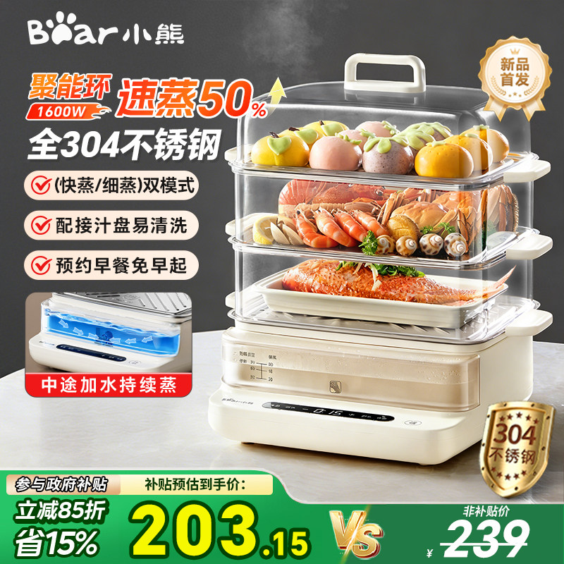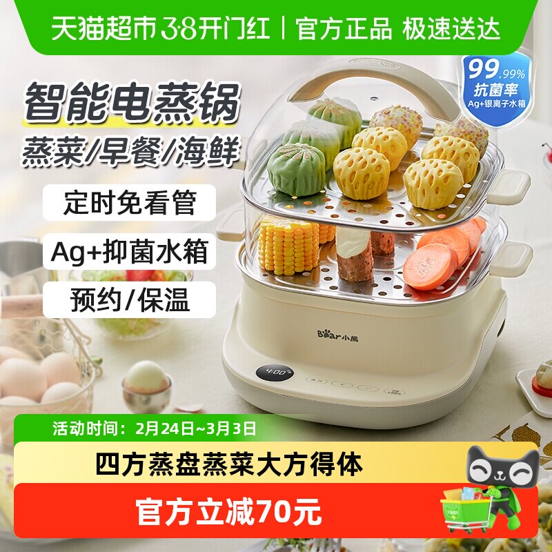 小熊电蒸锅家用多功能三层不锈钢2026新款蒸锅保温预约定时早餐机
