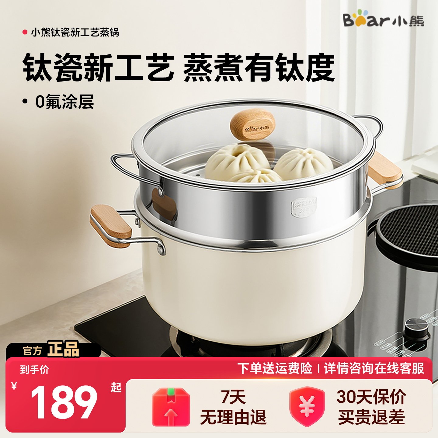 小熊钛陶瓷蒸锅家用2025新款蒸煮炖蒸煮锅双层蒸锅电磁炉燃气通用
