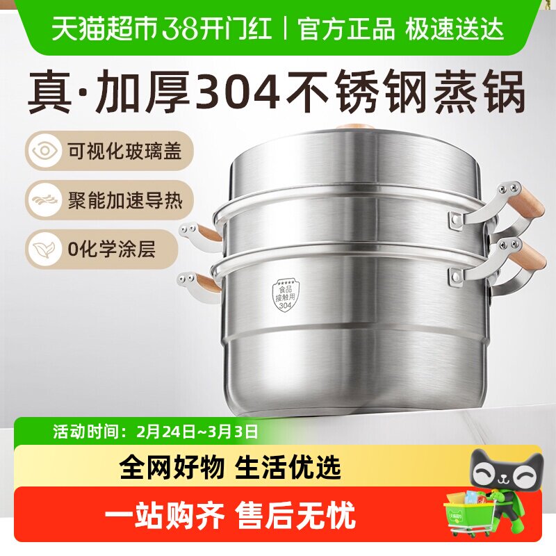 小熊蒸锅家用304不锈钢蒸笼蒸鱼馒头三层加厚电磁炉煤气灶通用