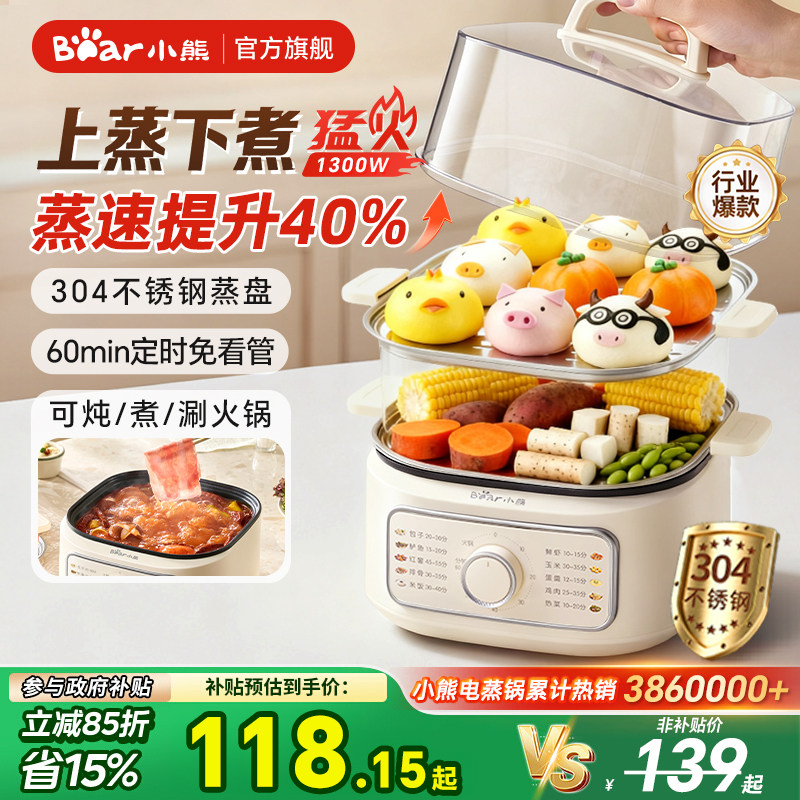 小熊电蒸锅不锈钢家用三层蒸煮一体早餐机电煮锅火锅炖小蒸箱蒸笼