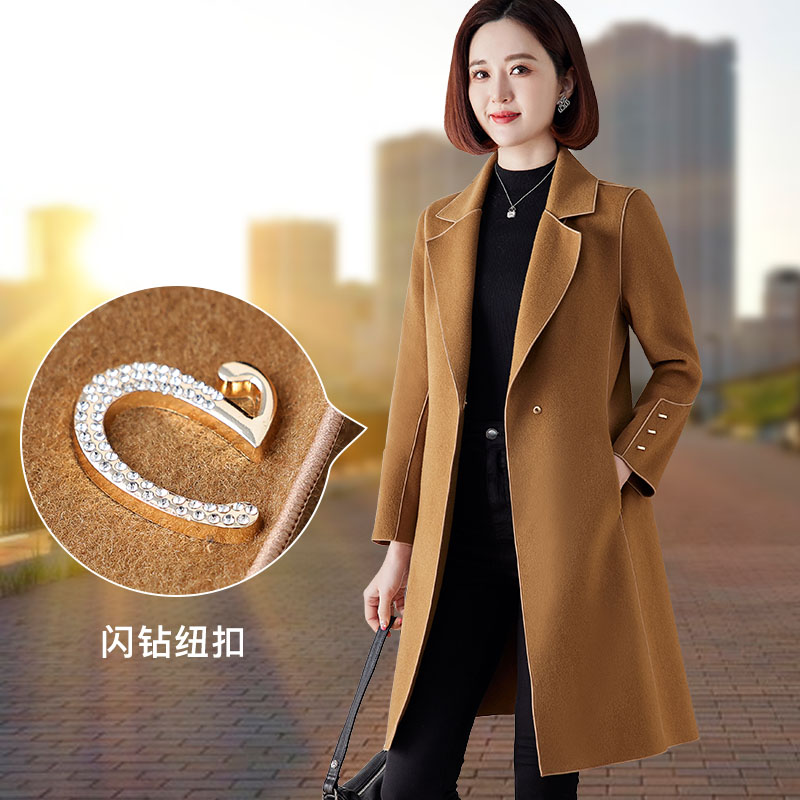 M2女装2025年秋冬新款双面呢毛呢大衣女中长款大码羊毛妈妈外套冬