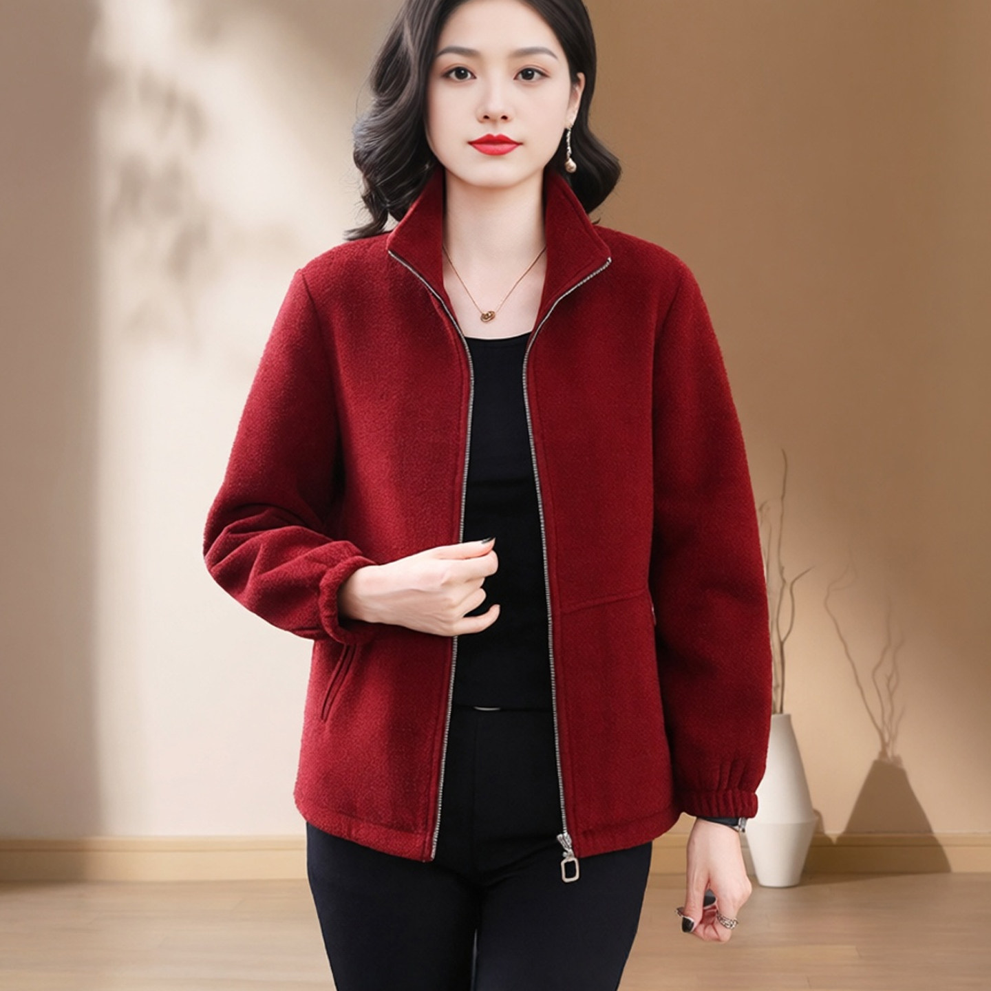 - 中老年毛呢外套女短款