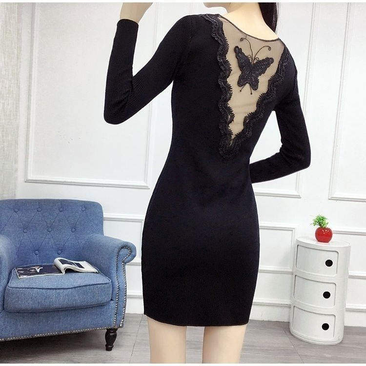 2021新款打底裙显瘦秋冬气质黑色紧身毛衣针织连衣裙性感包裙女冬