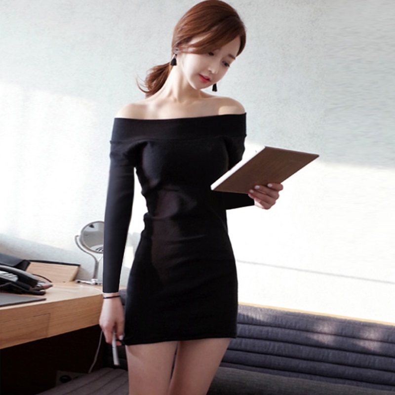 春秋季显身材纯欲气质一字领抹胸性感紧身包裙气质吊带连衣裙女装