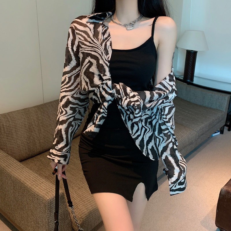 2021夏季新款气质套装两件套紧身包裙修身性感黑色吊带连衣裙女夏