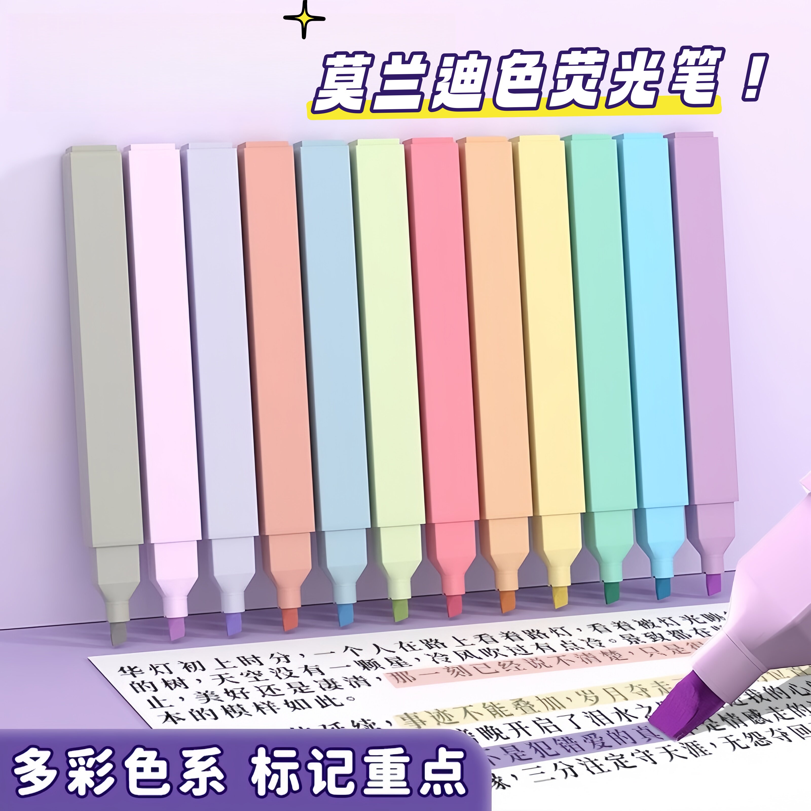 荧光笔荧光标记笔学生用记号笔彩色划重点小学生初中手抄报手账专用笔马卡龙淡色系多色高颜值荧光笔记重点笔