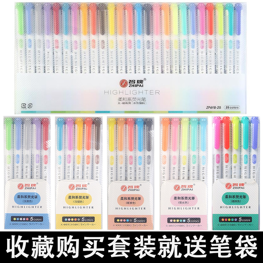 ZHIPAI智牌荧光笔斑马平替款手帐灰色 淡色双头标记笔彩色 记号笔