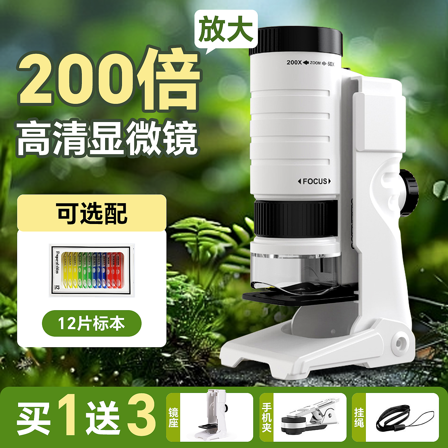 显微镜学生生物科学实验高清镜子手机中学生小学生儿童礼物带标本