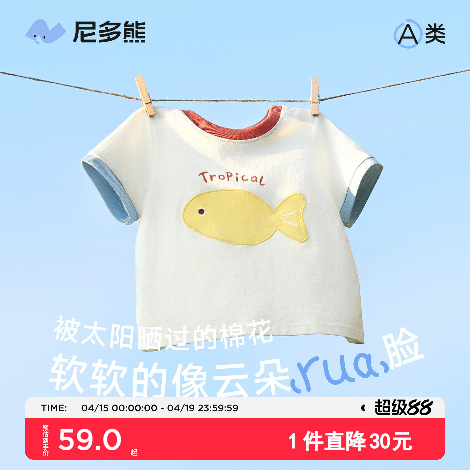 【透气网眼】尼多熊2026夏季新款男女宝透气短袖撞色T恤婴儿上衣