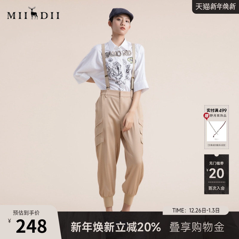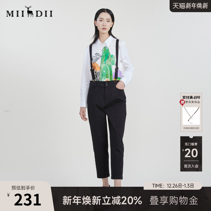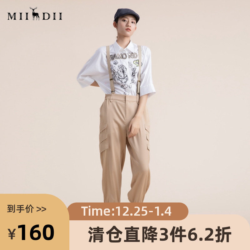 谜底长裤女春季新款简约百搭可拆卸背带休闲裤女231MK0161