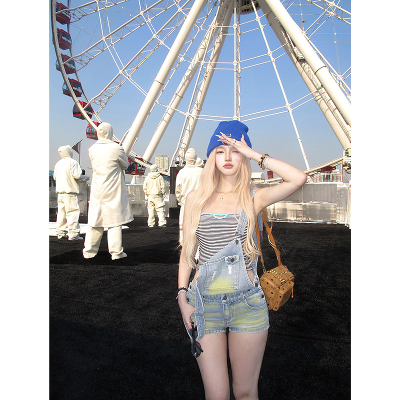 做旧感水洗磨破牛仔背带短裤女y2k千禧辣妹百搭减龄可拆卸连体裤
