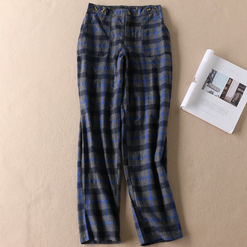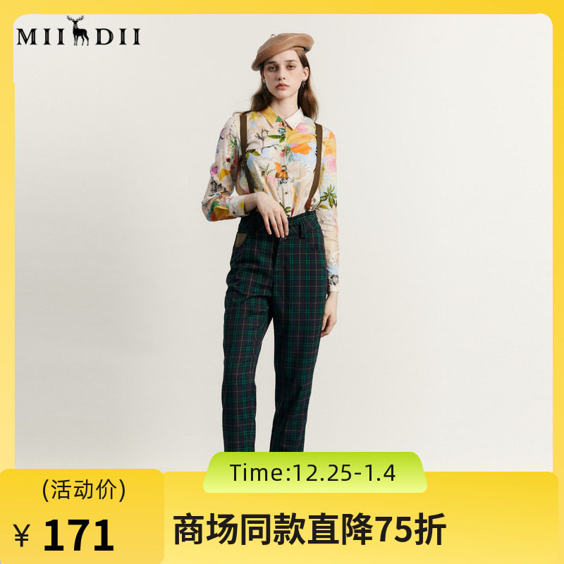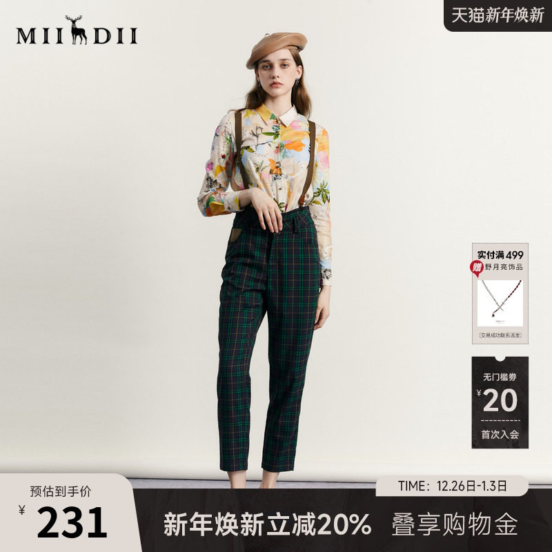 谜底格子可拆卸背带裤女2023秋新款复古格纹九分休闲裤233MK0968