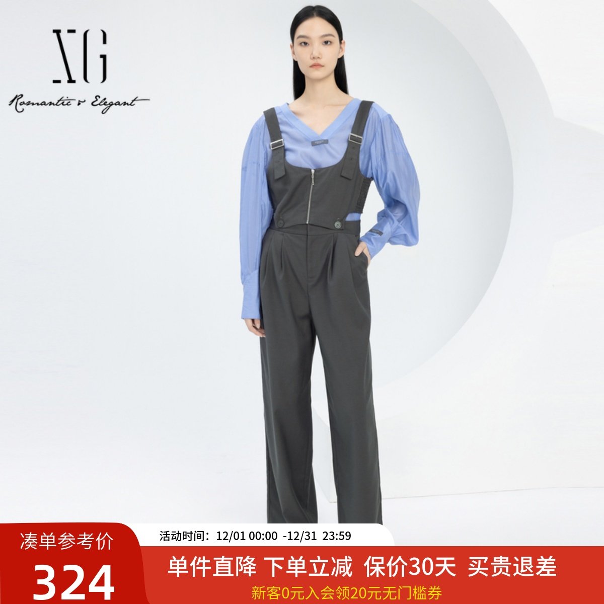 xg雪歌时尚可拆卸背带裤女2024春新款高腰直筒休闲裤XJ102024A581